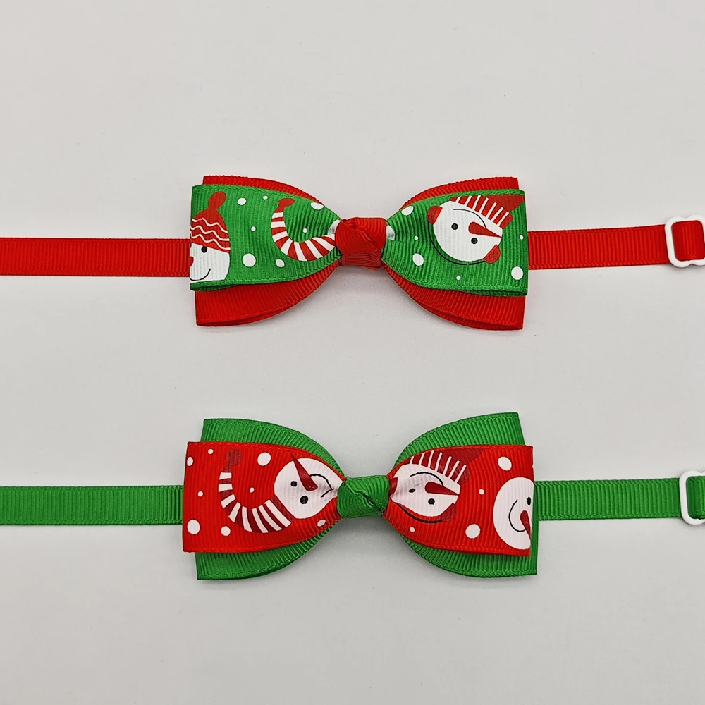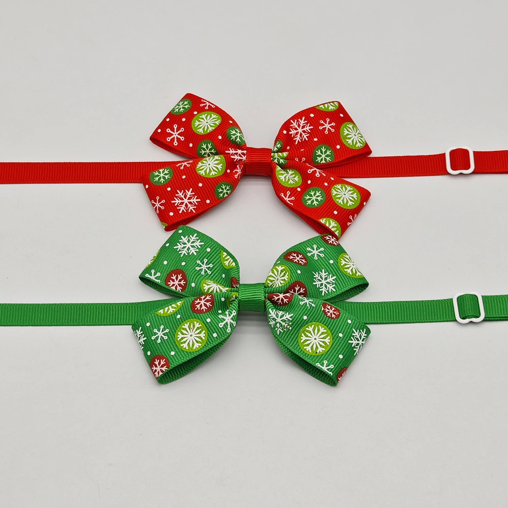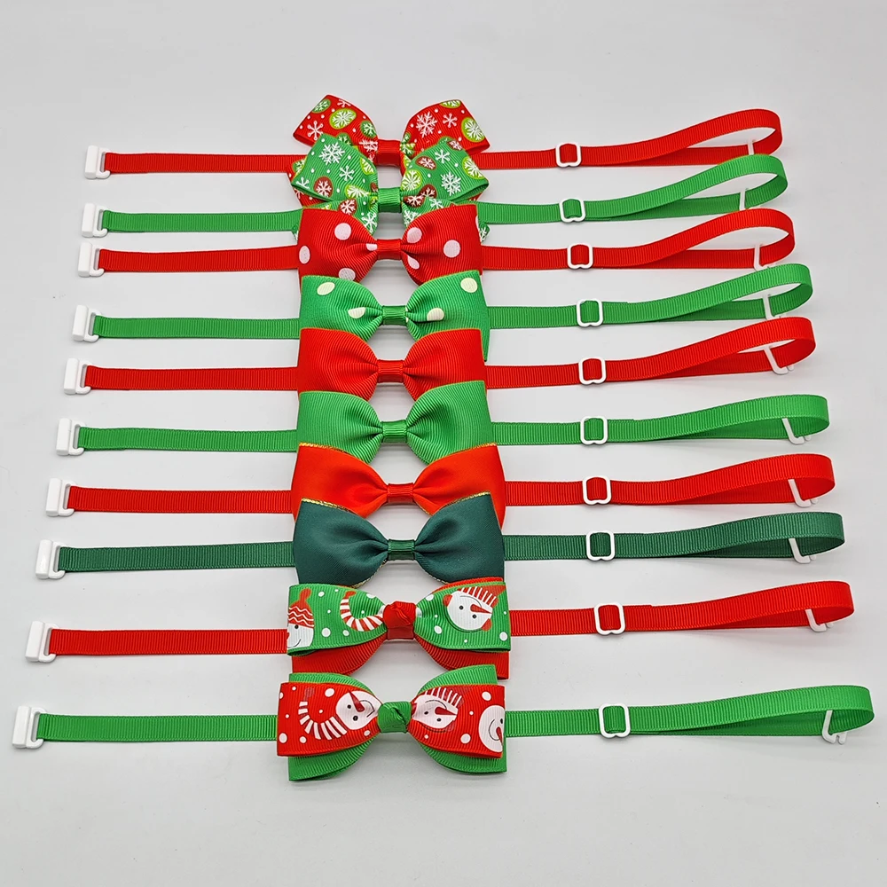 10Pcs Pet Christmas Bow Tie Adjustable Xmas Dog Cat Bowtie Collar Accessories for Small Dog Cat Festival Party Decoration Gift