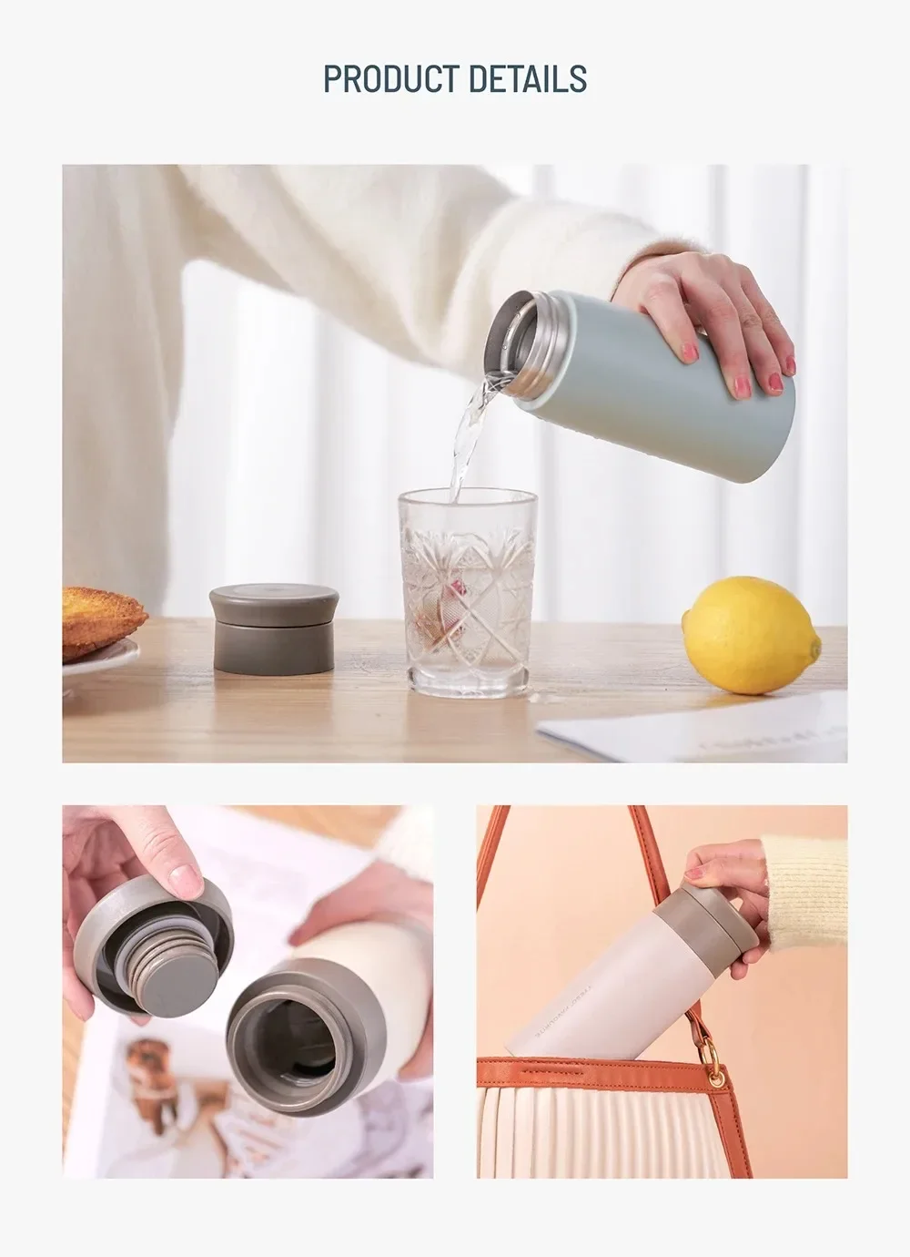 500ML  Stainless Steel Insulated Water Bottle Simple round Shoulder Travel Mug Portable Frosted Ins Style Design
