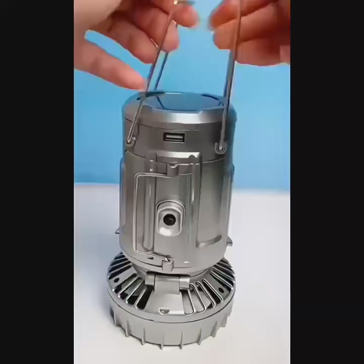 4.Essential for Home and Outdoor: This solar camping lantern cooling fan is an essential item that every home should have as backup lighting. It's perfect for outdoor activities such as camping, fishing, and hiking, or used as an emergency light during power outages, hurricanes, earthquakes, or other emergency situations.