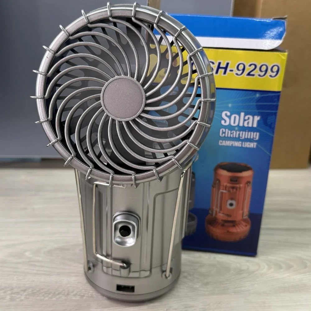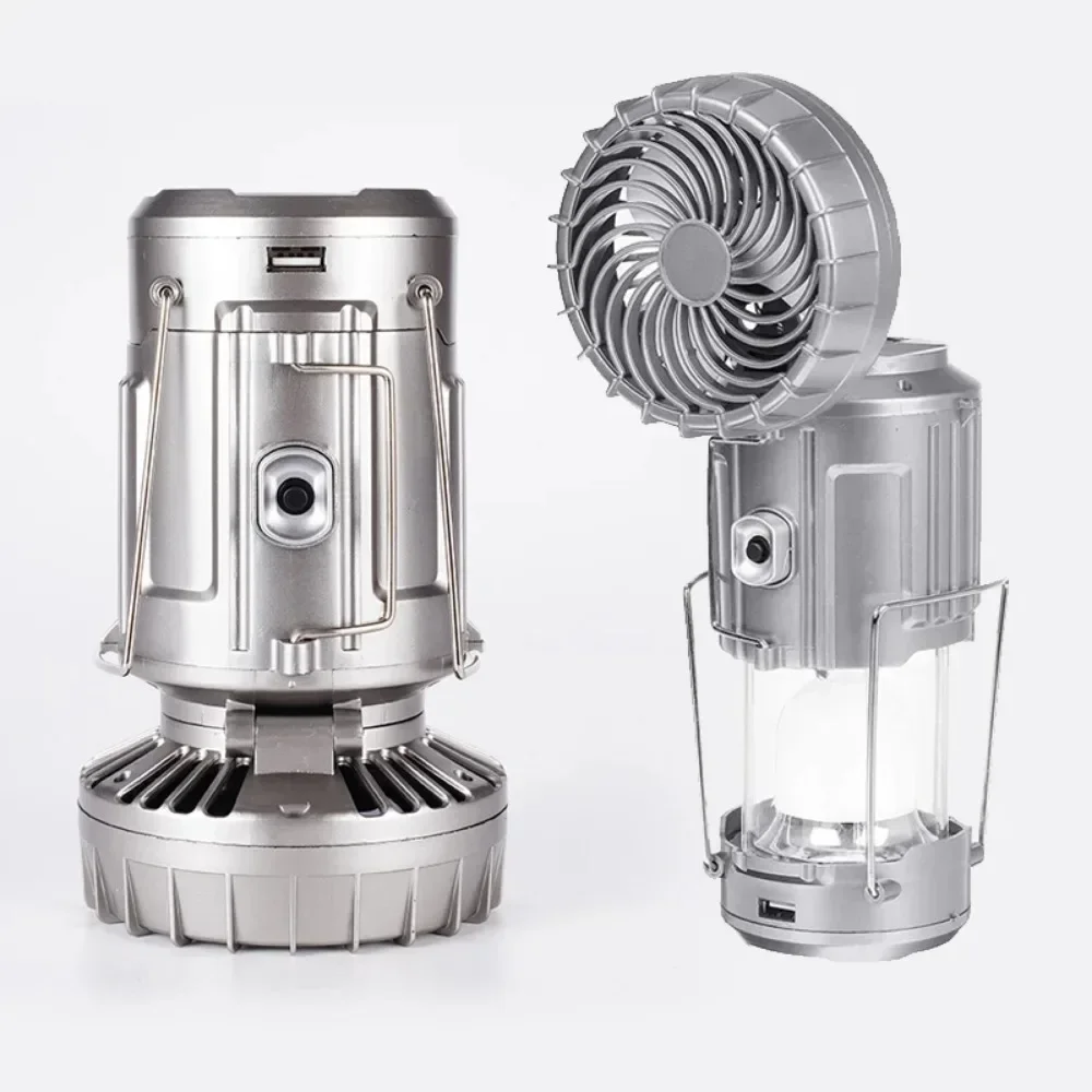 Camping Fan Portable Rechargeable Foldable Hangable Power Bank Lamp Handheld Lantern with Solar Charging