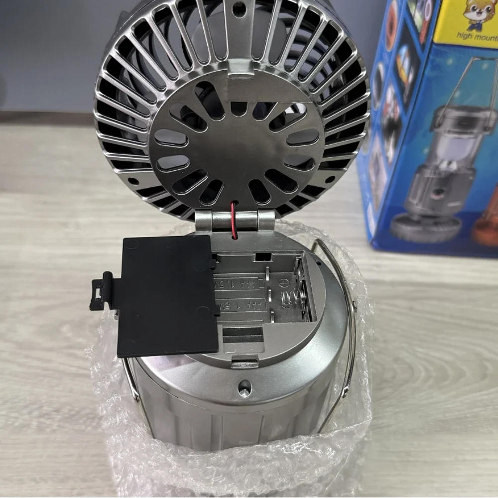 2.3 Power Supply Options: Our electric fan camping lamp has three power supply options: solar power,DC charging cable, and AA battery-powered (batteries not included). You can use the included USB cable or solar panel to power the fan using solar energy, ensuring that you never run out of battery.